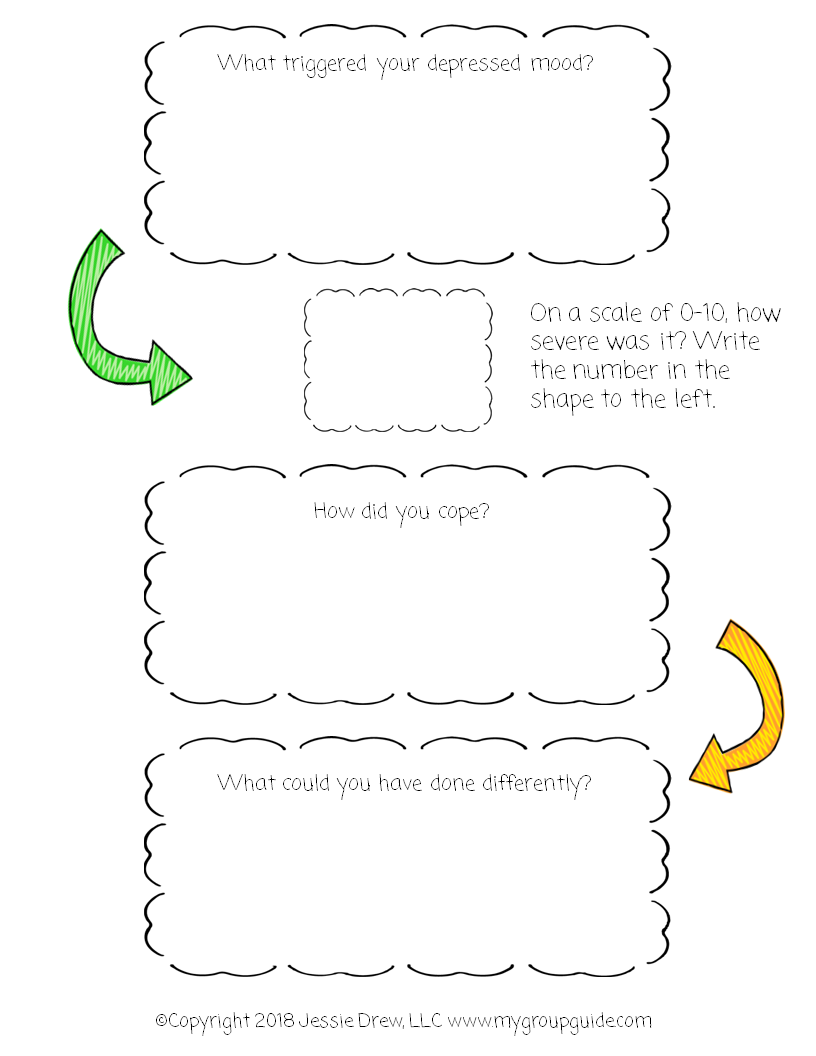 This worksheet allows your clients to brainstorm healthier ways to cope when they are feeling low. It also allows them to track triggers.